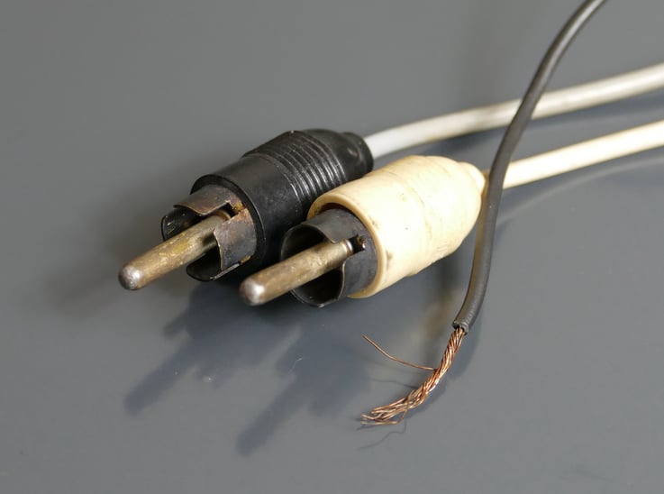 Bild unten: oxydierte Cinch-Stecker und Massekabel