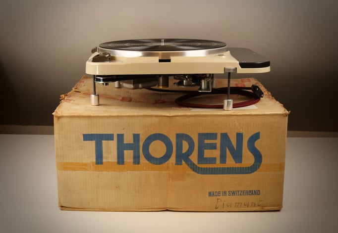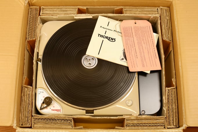 Dieses Angebot beinhaltet das abgebildete Laufwerk, sowie ein ungebohrtes original Thorens Tonarmbrett. Ein absolute Seltenheit ist die Tatsache, dass dieses Laufwerk sogar noch über die Originalverpackung mitsamt Bedienungsanleitung etc. verfügt.