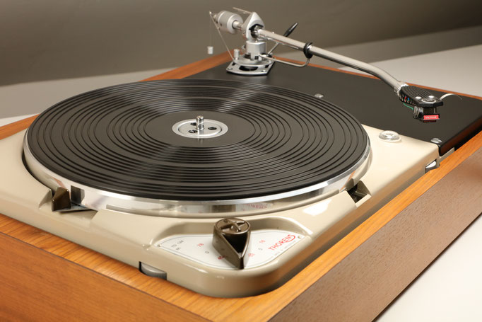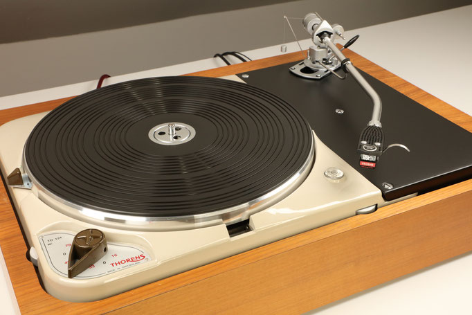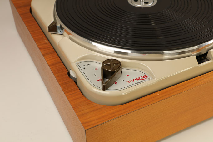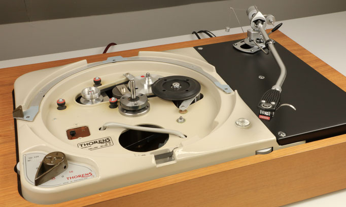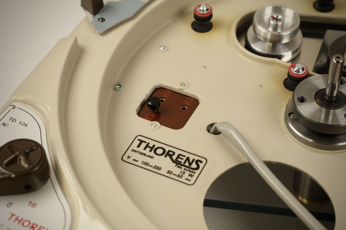 Ab Werk wurde dieser TD124 anfangs der 60er Jahre mit dem Thorens BTD-12S Tonarm ausgeliefert. Mit dem Ziel, das klangliche Maximum aus dem Gerät herauszuholen beauftragte der damalige Besitzer mitte der 60er Jahre einen HiFi Spezialisten mit der Aufrüstung des Gerätes mit den oben erwähnten Ingredienzien.