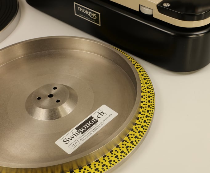 ausschöpfen zu können wurde das Gerät mit diversen upgrade-Teilen aus dem Hause SWISSONOR aufgerüstet. Das Laufwerk erhielt den nichtmagnetischen Hauptteller, den upgrade-Aluteller, sowie ein SWISSONOR Tonarmkabel.