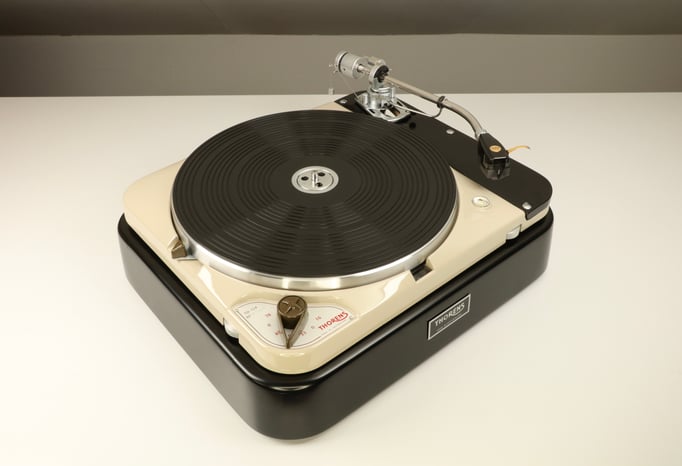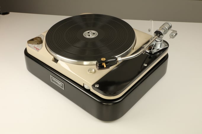 Technisch und optisch ein absolut makelloses Gerät. Das Chassis erhielt eine Neulackierung in Originalfarbe und glänzt wieder wie am Tag als es damals das Thorens Werk in St.Croix verliess.