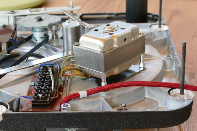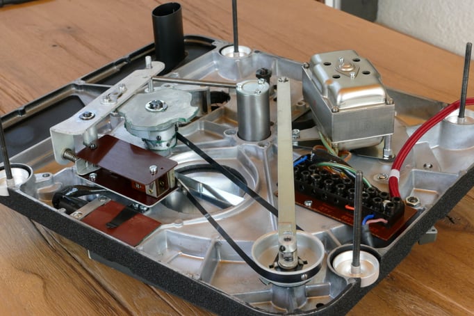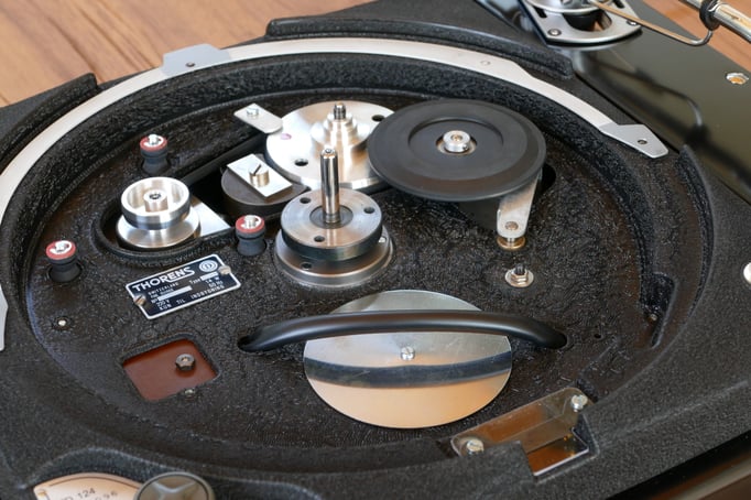 Technisch und optisch absolut makellos ! Inspiriert durch alte Röhrenverstärker aus den 1960er Jahren, wurde das Chassis sehr aufwändig in Schwarz Schrumpflack lackiert. Dieser TD 124 ist ein absoluter eye-catcher !