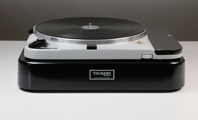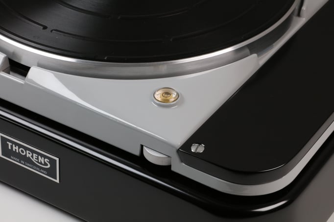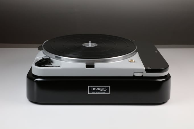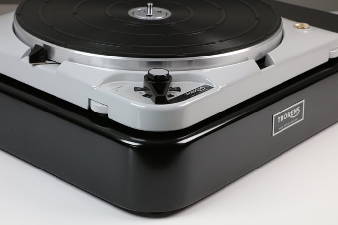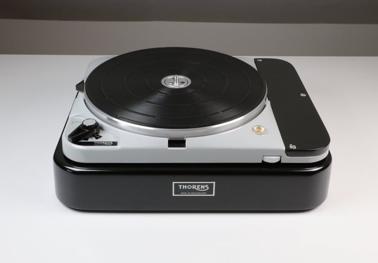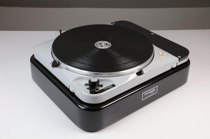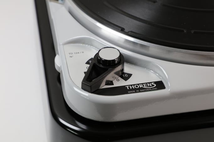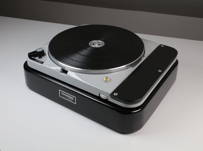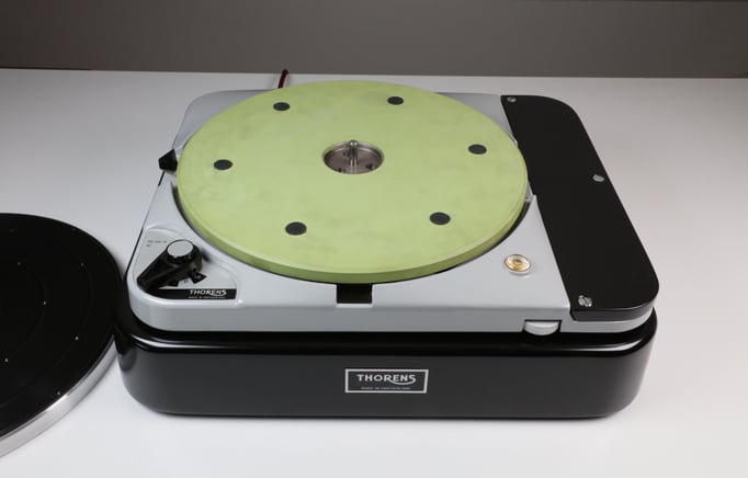 Thorens TD124 MkII, mit Konsole und Tonarmbrett in schwarz seidenglanz