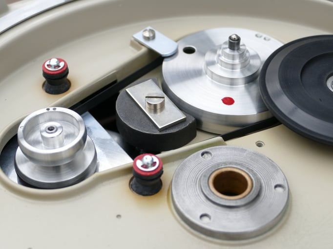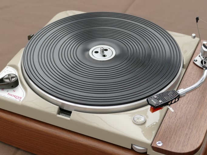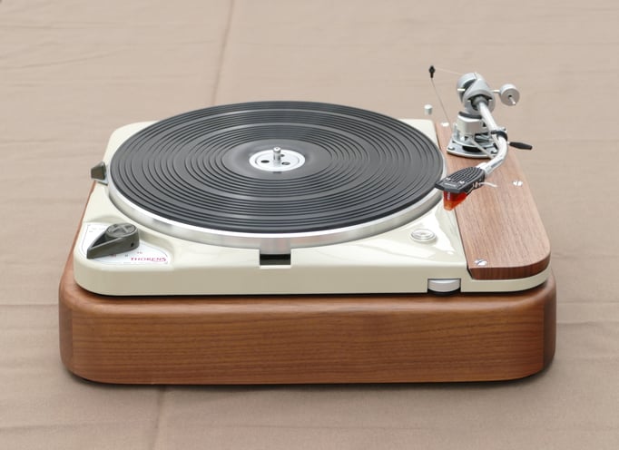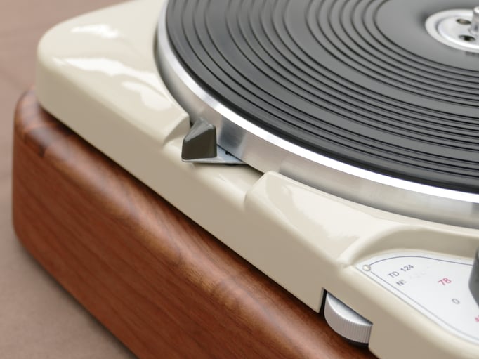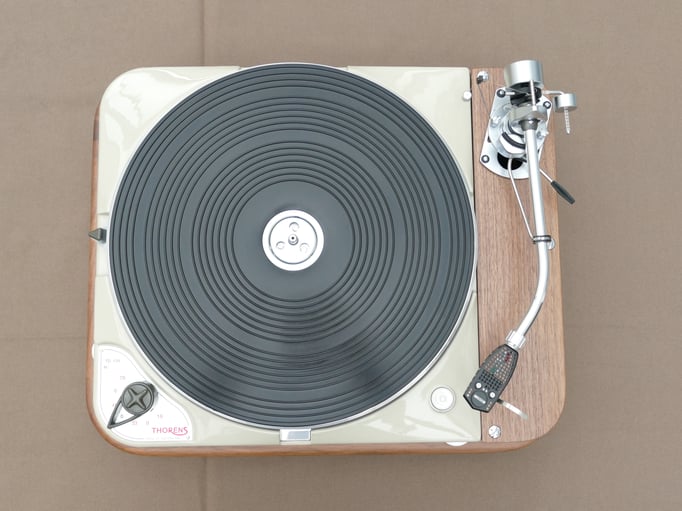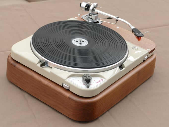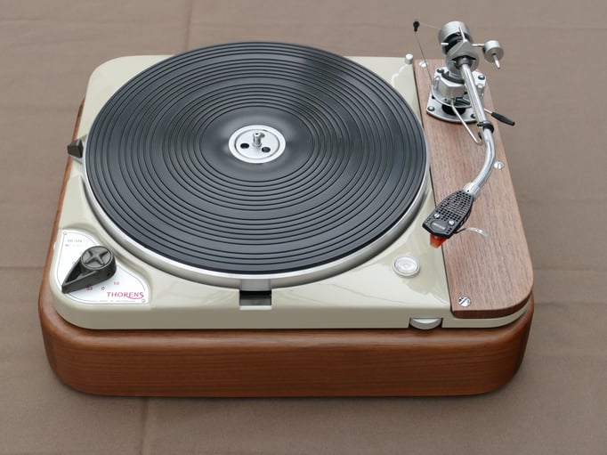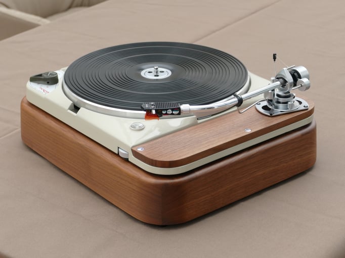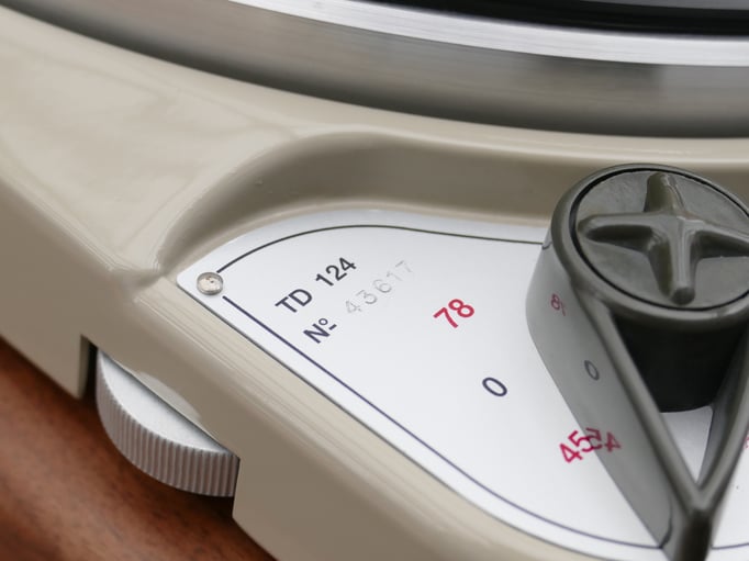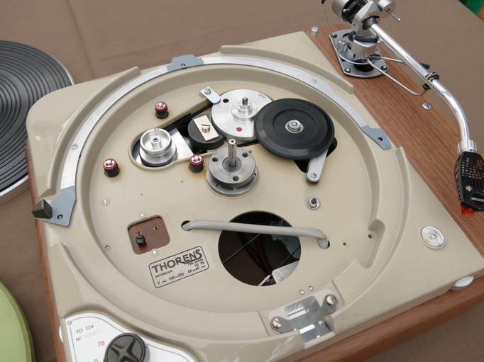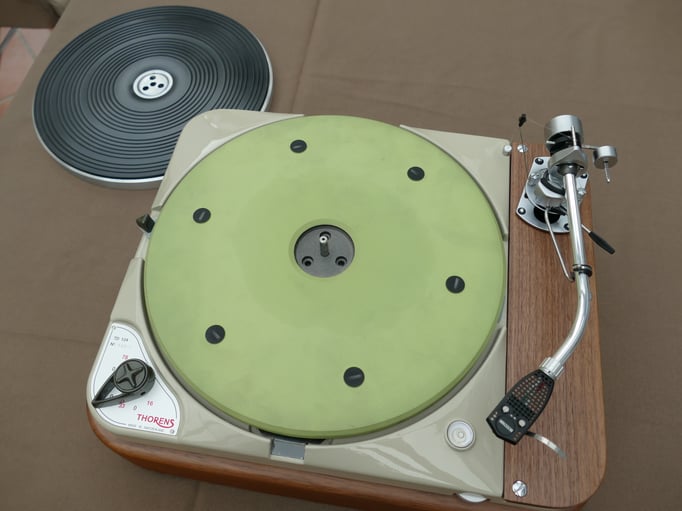Technically, this TD124 is in absolutely immaculate condition, in addition to the standard restoration all bearings of the stepped wheel and main bearing have been replaced. A new N.O.S. original Thorens idler wheel was also installed.