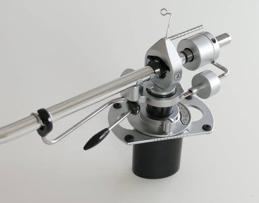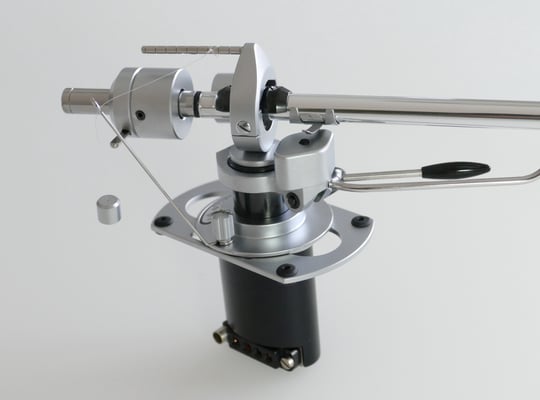 After complete disassembling of the tone arm all parts were cleaned, the decoupling rubbers of the counterweight were replaced, all contacts were cleaned, the silicone fluid of the queing mechanism re-filled and vertical-bearing play re-adjusted. The base plate rubbers have also been replaced.