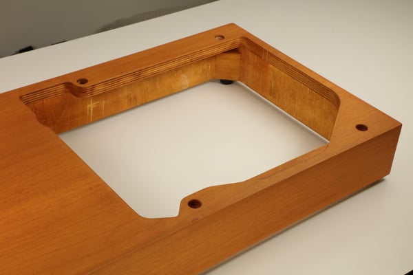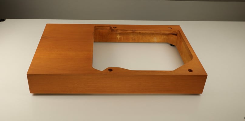 The design of our "hand-made in Switzerland" plinth has been adapted from the original Thorens design. Instead of plywood, as used for the original plinth, we selected glued multi-layer wood in order to achieve better rigidity of the construction.